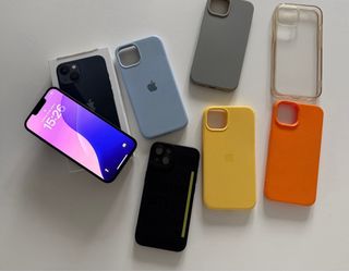 Lote de fundas para iPhone 13 de diferentes marcas y estilos. - Funda Boss - Funda Lacoste - Funda Apple - Funda Icon - Funda Kenzo - Fundas de colores variados (azul, negro, amarillo, crema, gris, menta). - Fundas transparentes.