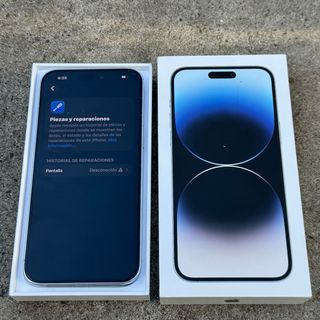 Teléfono móvil iPhone 14 Pro Max con 128GB de almacenamiento. Tanto batería como pantallas original siempre , no tiene caidas , solo signos de uso y desgaste , lleva protector y se entrega con funda , funciona perfectamente todo , no tiene problema ninguno de funcionamiento , SOLO SIGNOS DE DESGASTE Y USO negociable
