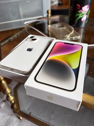 Teléfono móvil iPhone 14 en color plata y blanco. -128gb 86% de nivel de bateria - Diseño elegante y moderno. - Pantalla nítida y vibrante. - Cámara de alta calidad para fotos y vídeos.
