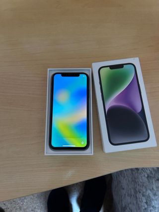 Teléfono móvil iPhone 14 con acabado en color morado y capacidad de almacenamiento de 128GB. - Doble cámara trasera. - Pantalla de alta resolución. - Diseño elegante y moderno. - Salud batería 72% - Regalo funda y cargador