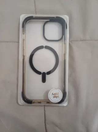 Funda protectora para iPhone 15 con diseño transparente y anillo MagSafe integrado. - Compatible con carga inalámbrica MagSafe. - Bordes reforzados para mayor protección. - Acabado anti-deslizante.