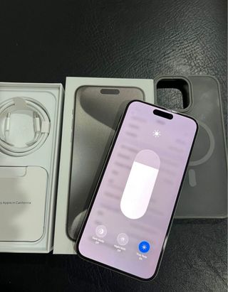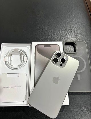 Teléfono móvil iPhone 15 Pro Max en color gris o plata. - Incluye cable de carga. - Funda protectora. - Caja original.