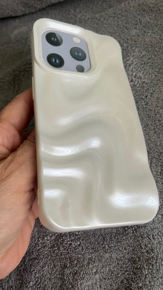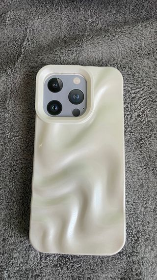 Funda para iPhone 15 Pro con un diseño texturizado y acabado nacarado. - Diseño ondulado único. - Color blanco perlado. - Protección para la cámara.