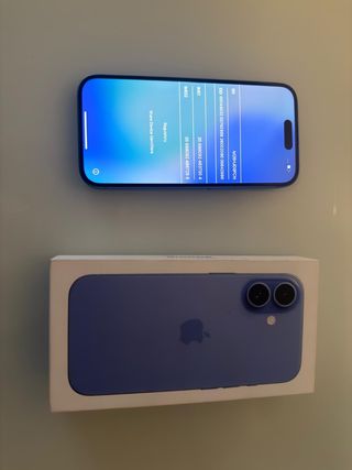 Teléfono móvil Apple iPhone 16 con acabado en azul. - Capacidad de almacenamiento de 128GB. - Salud de la batería 100%