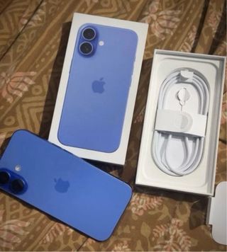 Teléfono móvil iPhone 16 Plus en color azul sin ninguna marca de uso. Se entregan con carcasas y protector de pantalla. - Incluye cable de carga original. - Herramienta para extraer la SIM.