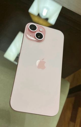 iPhone 15 en color rosa con 128GB de almacenamiento. Sin marcas en pantalla ni parte trasera - Capacidad máxima de la batería: 91%.