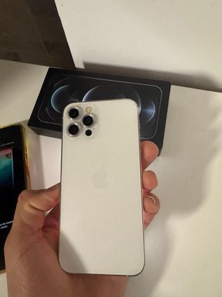 iPhone 12 Pro en color blanco. - Cámara triple. - Pantalla Super Retina XDR.