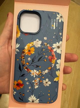 Preciosa funda para iPhone 14 con diseño floral y MagSafe. - Estampado floral sobre fondo azul. - Compatible con MagSafe. - Diseño exclusivo de ONEGIF Como nueva. Con caja original. Tiene una textura muy agradable que a la vez la hace antideslizante.