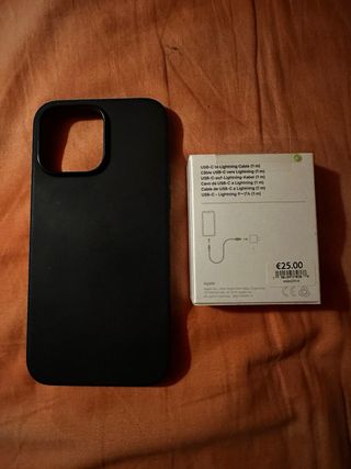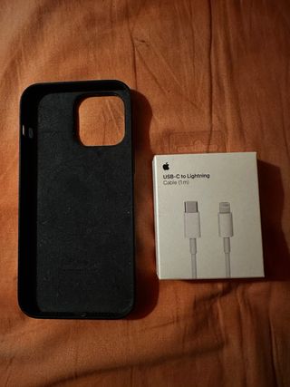 IPHONE 14 PRO MAX Se vende funda negra de silicona original para iPhone (poco uso y con caja) y cable de carga USB-C a Lightning de Apple (nuevo precintado) - Funda de color negro. - Cable de carga de 1 metro.