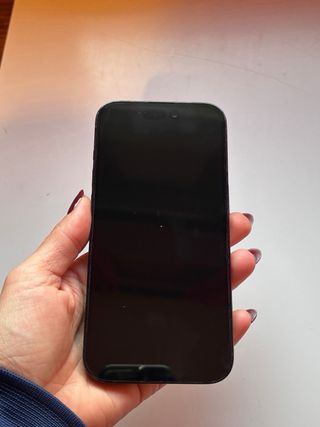 Teléfono móvil iPhone 14 Pro con acabado en negro y 256GB de almacenamiento. Siempre con funda, todo original y nunca se ha cambiado pantalla, cámara, batería o altavoces. Batería al 79% - Pantalla de 6.1 pulgadas. - Sistema de triple cámara avanzado. - Chip A16 Bionic para un rendimiento superior.