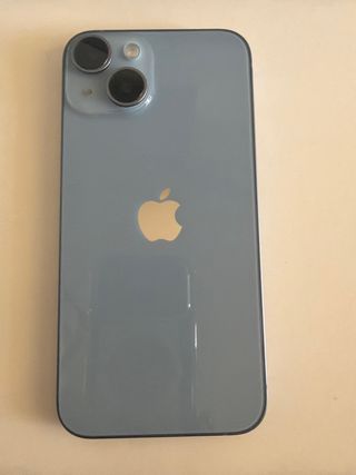 Teléfono móvil iPhone 14 en color azul. - Diseño elegante y moderno. - Cámara dual en la parte trasera. - conserva su caja - capacidad batería 88%