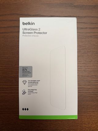 Protector de pantalla Belkin UltraGlass 2. - Hasta 2.7x más resistente que el vidrio templado. - Vidrio más fuerte y duradero. - Incluye bandeja Easy Align para una fácil instalación.
