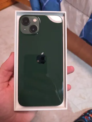 iPhone 13 en color verde con 256GB de almacenamiento. El teléfono está libre de iCloud el teléfono ha sido mojado y estuvo funcionando y un día se apagó me comentaron que era un problema de placa base opté por comprarme uno nuevo nos aceptan devoluciones es para piezas