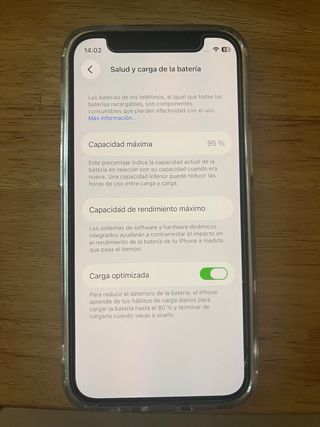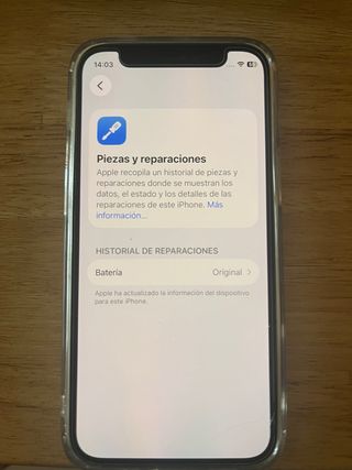 iPhone 12 mini con la batería al 95% de su capacidad. - Historial de reparaciones: Batería Original.