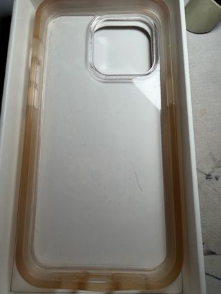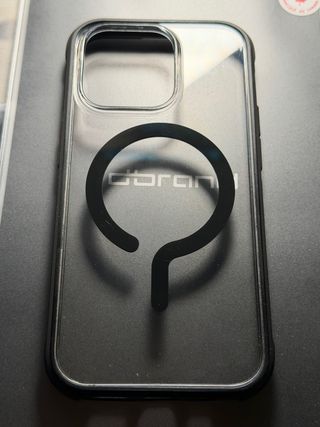 Carcasa transparente Dbrand Ghost (1ª generación) para iPhone 14 Pro. Diseñada para evitar ponerse amarilla con el tiempo. Tiene bastantes marcas de uso. - Material transparente. - Compatible con MagSafe.