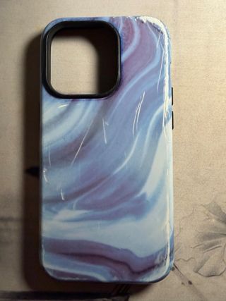 Funda para iPhone 14 Pro con un diseño de mármol en tonos azules y morados. Protege tu teléfono con estilo. - Diseño de mármol. - Color azul y morado.