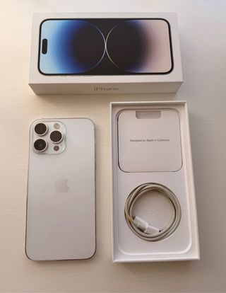 Vendo iPhone 14 Pro Max en color plata con 256GB de almacenamiento. En perfecto estado, incluye cargador y funda de regalo. Funciona perfectamente, lo vendo simplemente porque me han regalado uno nuevo. Cualquier pregunta, no dudes en contactar conmigo!
