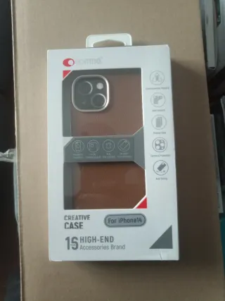 Funda protectora de alta gama para iPhone 14. - Material de cuero. - Protección contra caídas. - Diseño con marco de cámara. - Carga magnética compatible.
