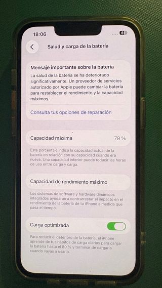 Teléfono móvil en excelente estado, casi sin uso. - Capacidad de 128 GB. - Salud de la batería al 85%.