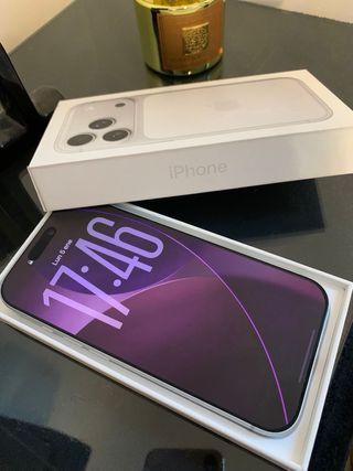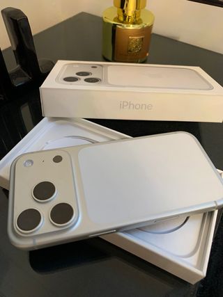 Teléfono móvil iPhone 17 Pro en color plata. - 100% bateria - PRECIO NO negociable - Recien comprado en noviembre, con facturas y garantia . - 256 GB - Diseño elegante y moderno. - Cámara triple en la parte trasera.