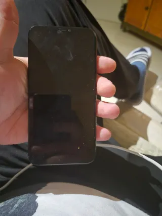 Teléfono móvil iPhone X en color negro. - Pantalla de 5.8 pulgadas. - Cámara dual trasera. - Reconocimiento facial. Telefono no enciende seria para piezas la pantalla esta perfecta sin arañazos venta solo en mano