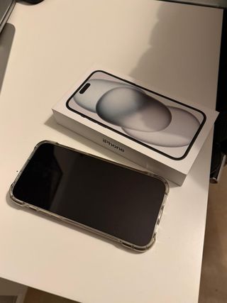 • Comprado en tienda oficial Apple España ✅ Tiene año y medio de garantía. • Estado: impoluto; sin arañazos en pantalla, bordes, trasera ni módulo de cámaras (se ve en las fotos). • Incluye: caja original, cable USB-C sin estrenar y la pegatina/protector original de pantalla. • Extras: 4 fundas (3 nuevas) + 1 protector de pantalla de regalo. • Entrega/pago: entrega en persona con pago por Bizum o envío mediante Wallapop (como prefieras).