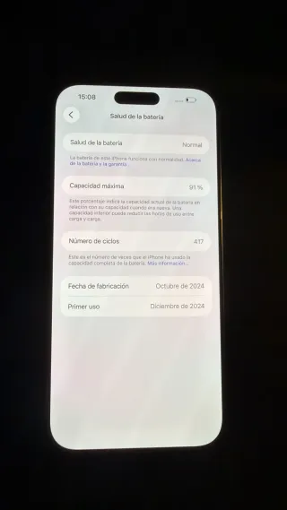 Iphone 15 Pro de 256 Gb en perfecto estado de funcionamiento Bateria 85% de salud y estéticamente un 9,5/10 Nunca abierto o reparado Totalmente funcional y se puede comprobar en todo antes de la compra Se entrega con su caja y su cable de carga+ protector de pantalla recién instalado y funda nueva de regalo !! Mas de 100 reseñas me avala!! No es negociable el precio y se trata solo con gente seria gracias