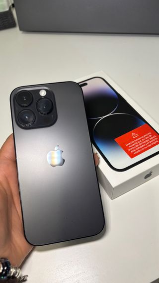 iPhone 14 Pro en color negro. - Muy bien estado. - Diseño elegante y moderno. - Salud de batería 84%. - 128GB de almacenamiento. - Lo doy con las fundas.