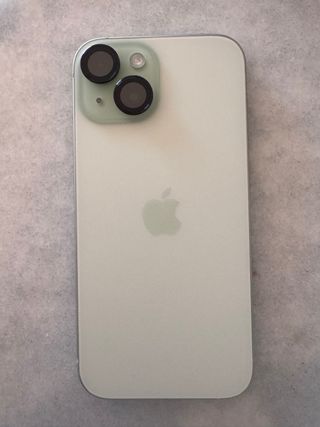 Teléfono móvil Apple iPhone 15 con acabado en color verde. - Capacidad de almacenamiento de 128GB. - Batería 89% Ha estado siempre con funda y protector. Sin muescas ni daños en la pantalla, laterales ni parte trasera. Dispongo de factura de compra.