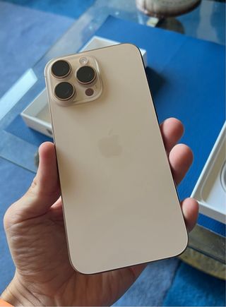 Teléfono móvil iPhone 16 Pro Max en color dorado y con 256GB de almacenamiento. Bateria al 94% - Diseño elegante y moderno. - Pantalla de alta resolución. - Cámara avanzada para fotos y vídeos. - Capacidad de almacenamiento amplia.