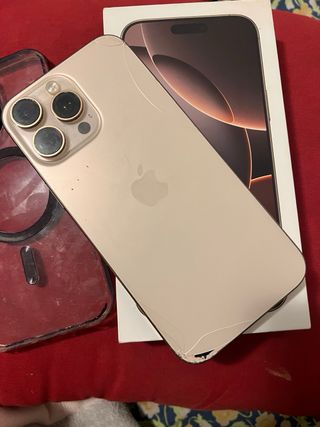 Teléfono móvil iPhone 16 Pro Max. - Pantalla de alta resolución. - Diseño elegante y moderno. - Cámara avanzada para fotos y vídeos. - Esta un poquito roto por atras pero por lo demas esta todo muy bien. - mas informacion escribeme