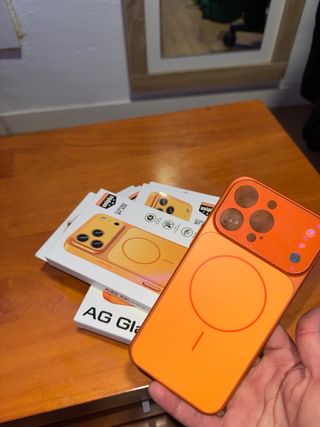 Funda de color naranja para iPhone 15 Pro Max. - Diseño moderno y llamativo. - Protección para tu dispositivo.