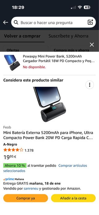 Mini batería externa de 5200mAh para iPhone. Diseño compacto y carga rápida. - Capacidad: 5200mAh - Carga rápida PD 20W - Color: Negro - conector lightning.
