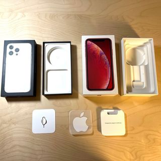 Se venden las cajas originales de un iPhone 13 Pro y un iPhone Xr. Incluye una pegatina de Apple. - También incluye el pequeño clip que sirve para sacar la tarjeta SIM. - Caja iPhone 13 Pro (color blanco). - Caja iPhone Xr (color rojo).