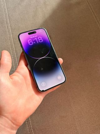 iPhone 14 Pro en buen estado, tiene la batería al 76%, esta bien para el día a día aunque se le puede reparar por poco dinero, estado perfecto, la pantalla es original pero tiene un punto pequeñito en la esquina inferior izquierda, gente seria, no negociable, no intercambios, gracias.