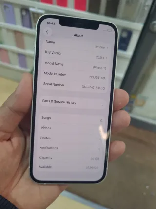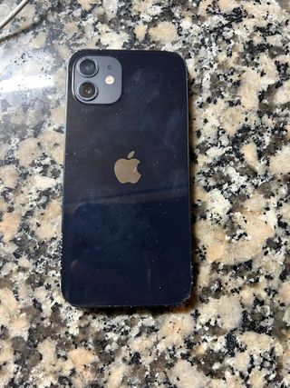 Teléfono móvil Apple iPhone 12 en color azul marino. se vende iPhone con bateria nueva al 100 de salud cambiada y pantalla cambiada nueva el lunes con garantía un año cambiado en tienda oficial de teléfonos no en ningún pakistani , va perfecto único roces del uso y del tiempo nada que afecte a su funcionamiento ( no hay caja )