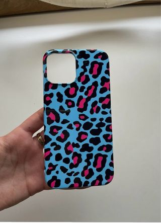 Funda para iPhone 12 con un diseño llamativo. - Estampado de leopardo en la bola 8. - Detalle lucky me escrito a mano.