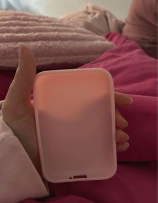 Funda de color rosa para cargador portátil de iPhone. Diseño liso y moderno. - Material: Silicona - Color: Rosa