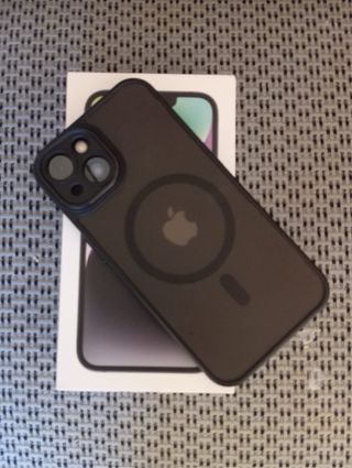iPhone 14 con acabado en azul oscuro y capacidad de 128GB. Perfecto estado muy bien cuidado con protector y funda. Se entrega con caja y carga y funda.