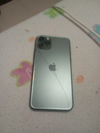 Teléfono móvil iPhone 11 Pro en color verde. Presenta una grieta en la parte trasera pero no afecta al telefono Me compré uno más moderno y este quedó en el olvido