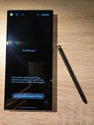 Samsung Galaxy S23 Ultra con acabado crema - Almacenamiento: 512GB - Batería nueva - Dual SIM + eSIM Aún tiene garantía. Gracias a ella le han cambiado la batería por fallo en la misma. El teléfono está bastante bien cuidado, tiene una pequeña marca en el marco abajo (ver foto). La pantalla está impoluta. Tiene su caja original con el cable USB sin utilizar.