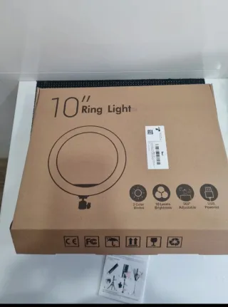 Aro de luz de 10 pulgadas con trípode y alimentación USB. Ideal para fotografía y video. - 3 modos de color. - 10 niveles de brillo. - Ajustable 360°. - Alimentación por USB.