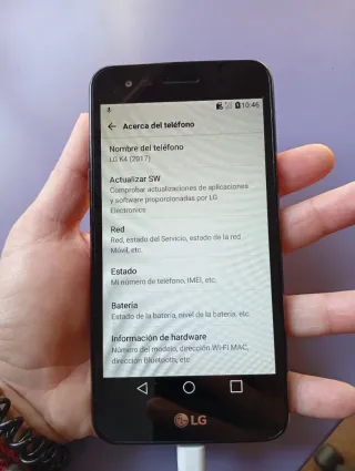 Teléfono móvil LG en color negro. La pantalla se encuentra en buen estado. Versión android 6. - Modelo con algunos años de uso. Con cargador micro USB. Sin caja. Android. Para llamar y poco más. Para instalar aplicaciones más utilizadas como Whatsapp y demás hay que meter la versión antigua desde fuera de la PlayStore, al formatear se fueron y las nuevas no son compatibles.