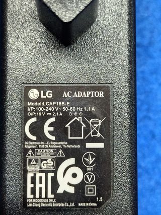 Adaptador alimentación original TV LG Valido para diferentes modelos, entre otros el 28MT49S. Referencia: LCAP16B-E Características: Salida = 19 Voltios 2.1 Amperios.