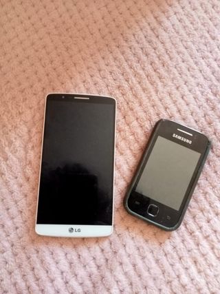 Movil marca LG modelo G3 D855. Funciona perfectamente. La batería está agotada. Móvil Samsung, funciona perfectamente, la carcasa de atrás se rompió y lleva una funda.