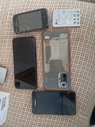 Se venden 5 teléfonos móviles: 2 Samsung negros, 3 redmi y 1 LG-G3, ahora no me enciende, antes iba perfecto. Y una batería LG. Para piezas o lo que se quiera, tienen la pantalla estrellada, menos el LG que está perfectamente. Proponed precio. Negociable.