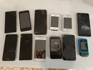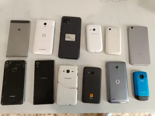 Se vende lote de 12 teléfonos móviles antiguos de diferentes marcas. Ideal para coleccionistas o para piezas. - Incluye modelos de Huawei, LG, Nokia, Samsung y Sony. - Variedad de colores: negro, azul y blanco.