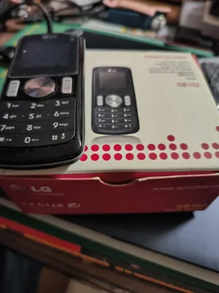 Teléfono móvil LG GB102 en su embalaje original. El paquete incluye todos los accesorios. - Modelo: GB102 - Color: Negro - Incluye caja original y accesorios.