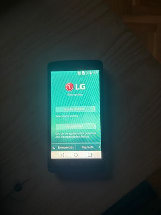Teléfono móvil LG en color negro. Listo para configurar. - Pantalla con logo LG y opción de idioma. - Accesibilidad y ajustes para personas con discapacidades físicas. - Botones de emergencias y siguiente. En buen estado con un defecto en la pantalla en la parte abajo a la izquierda pero no se ve cuando esta encendido Funciona bien y viene con el cargador y tarjeta mirco SD de -8GB