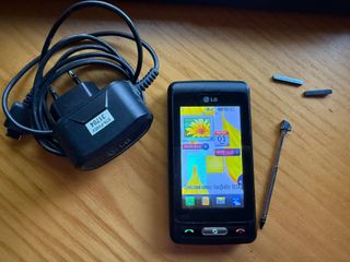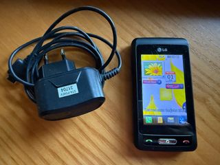 Teléfono movil LG modelo Cookie KP502. Viene con el cargador y conserva el lápiz para la pantalla. La batería carga y el teléfono funciona. Los compartimentos para la microsim y la toma de carga tienen la tapa pero no se sujega. La pantalla está algo rayada pero no rota.